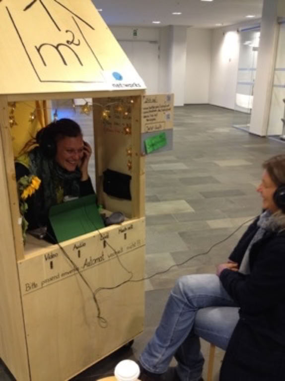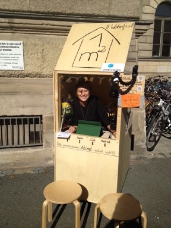One-SQM-House in einem Happening vor dem OBI: